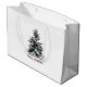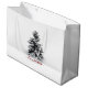 Grand sac cadeau blanc brillant avec l'image, à l'avant et à l'arrière, d'un pin solitaire recouvert de neige et "Joyeux Noël" imprimé en rouge en dessous. Voir sac cadeau moyen assorti, confetti, étiquette de faveur, étiquette, autocollant rond et papier d'emballage. Voir l'ensemble de la collection de sacs cadeaux de vacances dans les TOUCHES SPÉCIALES | Section Favoris.