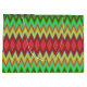Un sac-cadeau vibrant présentant un motif zigzag audacieux et coloré dans des nuances de vert, de rouge et de jaune. Il a des poignées blanches et transmet un ton festif et animé.