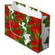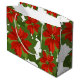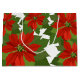 Grand sac cadeau de vacances montré dans une impression festive de poinsettias rouges de Noël. Customisez cet objet ou achetez tel quel.