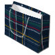 Un simple et classique plaid de Noël avec un arrière - plan bleu marine et des chèques-cadeaux verts, rouges, jaunes et blancs fait un sac cadeau de vacances parfait. Conçu pour coordonner avec la collection Lea Delaveris Design merry et plaid brillant, ce sac fait un grand ajout à l'emballage cadeau, étiquettes et autocollants également disponibles. Parfait pour une collection coordonnée de cadeaux sous votre arbre.