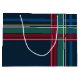 Un simple et classique plaid de Noël avec un arrière - plan bleu marine et des chèques-cadeaux verts, rouges, jaunes et blancs fait un sac cadeau de vacances parfait. Conçu pour coordonner avec la collection de plaid de Noël classique Lea Delaveris Design, ce sac ajoute une grande valeur à l'emballage cadeau, étiquettes et autocollants également disponibles. Parfait pour une collection coordonnée de cadeaux sous votre arbre.
