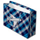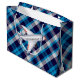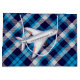A Blue Plaid Large Gift Bag With A White Airplane Center For Birthdays Or Going Away Trips