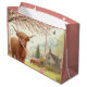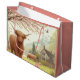 Grand Sac Cadeau Vache des hautes terres mignonne, florale/printani