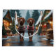 This festive design captures the joyful spirit of the holiday season, featuring an adorable dogs.Nestled in a winter wonderland, complete with a decorated Christmas tree, and beautifully wrapped presents. Snowflakes gently fall, adding a magical touch to the scene, while the vibrant colors of the holiday decorations create a warm and cheerful atmosphere.