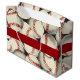Grand sac brillant de cadeau avec une image des base-ball avec piquer rouge. Le ruban rouge autour du milieu a le texte personnalisable qui lit "vont équipe qui reçoit !" See assortissant le sac moyen de cadeau. Voyez la collection entière de sac de cadeau de fête des pères dans la section SPÉCIALE de cadeaux des CONTACTS |.