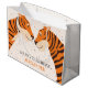 Pour le petit qui fête un anniversaire. Safari jungle tigre sac cadeau à thème, idéal pour le petit qui aime les tigres. Conservez le texte de conception de 'HAPPY BANTHDAY' tel quel ou modifiez-le et incluez votre propre texte au bas de la conception. Tout le texte apparaîtra à l'avant et à l'arrière du sac cadeau. Idéal comme sac cadeau pour le petit enfant qui célèbre son anniversaire.