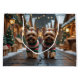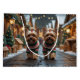 This festive design captures the joyful spirit of the holiday season, featuring an adorable dogs.Nestled in a winter wonderland, complete with a decorated Christmas tree, and beautifully wrapped presents. Snowflakes gently fall, adding a magical touch to the scene, while the vibrant colors of the holiday decorations create a warm and cheerful atmosphere.