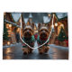 This festive design captures the joyful spirit of the holiday season, featuring an adorable dogs.Nestled in a winter wonderland, complete with a decorated Christmas tree, and beautifully wrapped presents. Snowflakes gently fall, adding a magical touch to the scene, while the vibrant colors of the holiday decorations create a warm and cheerful atmosphere.