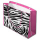 Grand Sac Cadeau Zèbre noir et blanc Imprimer avec rose chaud Anniv