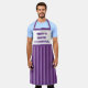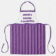 Le texte par défaut de cet tablier avec des bandes blanches et violettes ci-dessous dit, "Cuisine de la maison de maman", ce qui le rend idéal pour l'anniversaire de votre mère ou pour la fête des mères, mais ce texte peut être changé pour convenir à toute personne qui aime la cuisine ou la cuisson et la couleur violet.