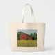 Photo originale d'une grange rouge dans un champ de fleurs jaunes.