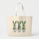This Easter canvas tote bag features cute bunny rabbit green topiaries with pink, blue and yellow bows in blue and white chinoiserie flowerpots. Personalize the holiday message on the back with your choice of name and special text.