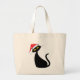Grand Tote Bag Chat noir à Santa Hat