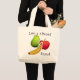 "Ne vous inquiétez pas - soyez heureux" et regardez cool pendant que vous y êtes. Ce sac fourre-tout en toile de taille jumbo avec ses "autocollants" aux fruits aux couleurs vives et alléchants apporte sourires ET fonctionnalité. Idéal pour pique-niquer, sac de plage, fournitures de loisir ou comme un sac écologique d'épicerie ou de shopping.