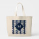 Grand Tote Bag Monogramme de rayures blanches bleues modernes