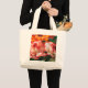 Sac de couleur chaude à thème botanique avec une photo de bouquet de fleurs colorées : gerbera orange et oeillets rouges rayés symbolisant la dévotion, l'amour et la fascination. Style Boho design optimiste glamour. Cadeau élégant pour toute occasion spéciale (Saint Valentin, fête des mères, Fête des grands-parents, anniversaire), accent vibrant à votre tenue. Vous pouvez supprimer le texte "Amor vincit omnia" (l'amour conquiert tout) ou le remplacer par votre propre message (cliquez sur "Personnaliser ce modèle"). Pour d'autres modifications (style de police, couleur de police, position du texte), cliquez sur "Modifier la conception".