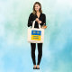 This royal blue and gold "Slava Ukraini" tote bag design shows your support of Ukraine and the Ukrainian people. Slava Ukraini is a national salute of sovereignty meaning Glory to Ukraine. The design has "Slava" and "Ukraini" in blue lettering on yellow, with a golden yellow and orange sunflowers on the azure blue background.