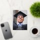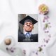 Une élégante et élégante faire-part de graduation qui présente la photo de votre diplômé superposée avec "Graduate" écrit dans un grand type tendance en papier argent réel et son nom, l'école et l'année de classe.