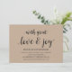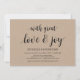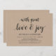 Avec un grand amour et une grande joie, cartes d'invitation pour réception de mariage en fuite. Cette carte d'invitation rustique sur papier kraft est parfaite pour votre réception de mariage et la fête de célébration après le mariage. Ajoutez vos détails dans une police / lettrage noir assorti.