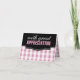 Cartes de remerciement personnalisées conçues en rose, noir et blanc, avec une illustration d'en-tête de cadre noir sur un motif en vichy rose et blanc. L'intérieur peut être personnalisé avec votre propre message personnalisé, ou le texte modèle peut être facilement supprimé pour laisser la zone de message de ces cartes en blanc pour écrire à la main vos propres sentiments de remerciement. Ce design est assez simple pour convenir à n'importe quel anniversaire, Fête des mariées, ou autre occasion d'envoyer des remerciements. Pas de commande minimum. Des remises en vrac s'appliquent.