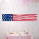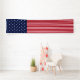 Grande bannière intérieure américaine avec étoiles et rayures qui remplissent la bannière suffisamment grande pour s'étendre sur 12 pieds d'espace sur un mur intérieur ou accroché au plafond. Utilisez cette bannière pour un rassemblement politique, un événement sur le thème des vétérans, la fête de l'Indépendance, un événement patriotique célébrant n'importe quoi d'américain. ou des congrès d'entreprise et des salons commerciaux.