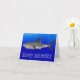 Une carte idéale pour les amateurs de requins petits et grands, avec un grand requin blanc CGI contre une véritable photo de requins nageurs. Il n'y a pas d'images générées par l'IA dans cette conception.