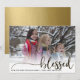 Cette carte de vacances comporte le mot "béni" dans le script et votre libellé personnalisé, ainsi que votre photo de famille préférée. Utilisez le formulaire modèle pour ajouter vos informations. La fonction "Personnaliser supplémentaire" peut être utilisée pour accéder aux menus avancés où vous pouvez changer la police et ajouter du texte/des images à l'arrière de la carte. Parfait pour un bulletin familial ou des photos d'événements spéciaux que vous voulez partager.