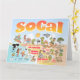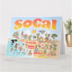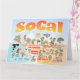 Une scène lumineuse et colorée offre une vue spectaculaire de la Californie du Sud - personnages farfelus sur la plage et le désert de SoCal présentant Los Angeles, San Diego, Orange County, Père Noël Barbara, Riverside, Palm Springs, Anza Borrego et Joshua Tree parcs ainsi que les villes frontalières de Tijuana, Tecate et Mexicali. Cette scène pleine de charme a tout - un surfeur pend dix tandis qu'un orque saute de l'eau, des animaux de zoo accueillent les touristes, un couple de plage musclé à flex pour impressionner comme un T-Rex rugit un défi et un réservoir se met en position et bien plus encore...