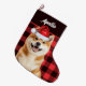 Grande Chaussette De Noël Akita Cute Dog Red Buffalo Plaid with Name