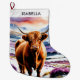 Profitez de la magie hivernale des Highlands écossais avec ce stock de Noël illustré. Le bas festif représente une vache Highland classique, avec des montagnes enneigées et une bruyère violette vibrante, dans un style aquarelle. Personnalisez le bas avec un nom pour une touche de finition individuelle.