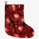 Un bas de Noël rouge très festif avec un motif de décoration d'arbres de Noël rouge métallique, des ornements et des billes pour ajouter un peu de paillettes et de pétillant à vos cadeaux de Noël cette période de fêtes.