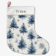 Grande Chaussette De Noël Blue White Christmas Trees Snowflakes