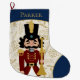 Casse-noisette personnalisée Stocking de Noël Apportez un charme fantaisiste à votre décor de vacances avec ce stock de Noël Casse-noisette personnalisé. Doté d'un soldat Nutcracker classique debout sur un riche arrière - plan beige orné de feuilles saints et de baies, ce bas reflète l'esprit festif de la saison. La riche bannière bleue au sommet ajoute un endroit parfait pour la personnalisation, ce qui en fait un ajout chéri à n'importe quel mantel cheminée. Idéal pour ajouter une touche traditionnelle mais ludique à vos célébrations de Noël. Idéal pour un cadeau de vacances ou pour créer une expérience de vacances personnalisée.