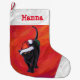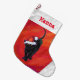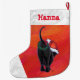 Grande Chaussette De Noël Chat noir mignon à Santa Hat sur Rouge