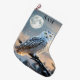 Grande Chaussette De Noël Chouette neigeuse en hiver au clair de lune avec c
