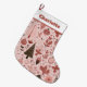 "Add a cheerful touch to your holiday décor with this Pink Christmas Stocking featuring a charming Christmas pattern photo. The design includes festive elements such as Christmas trees, ornaments, stars, and seasonal accents, all arranged in a playful and modern layout. The soft pink backdrop gives it a fun, stylish twist on traditional holiday colors, making it perfect for contemporary Christmas themes. Ideal for holiday photos, décor, personalized gifts, or festive product designs, this stocking captures the joyful spirit of the season with a bright and whimsical look."