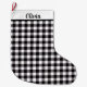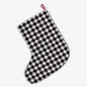 This Christmas stocking is shown in a black and white color buffalo plaid print.