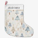 Grande Chaussette De Noël Cream Beige Blue Christmas Trees