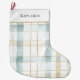 Grande Chaussette De Noël Crème Bleue Blanc Plaid Parties scintillant or de
