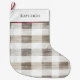 Grande Chaussette De Noël Crème Tan Bio Blanc Plaid Bande bordeaux