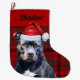 Grande Chaussette De Noël Cute Bluenose Pitbull Dog et Red Plaid Custom
