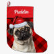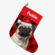 Grande Chaussette De Noël Cute Pug Dog Red Buffalo Plaid Custom