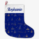 Grande Chaussette De Noël Elegant Blue W/ Gold Christmas Tree Doodles