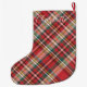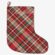 Grande Chaussette De Noël Farmhouse Plaid Personnalisée Script Rouge Personn