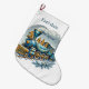 Grande Chaussette De Noël Festive bleu Noël train ajouter nom