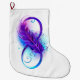 Infinity symbole with a beautiful feather painted in purple and blue bright colors on white background