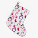 Grande Chaussette De Noël Joli Motif de Noël rose et blanc avec des pingouin
