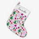 Grande Chaussette De Noël Joli Père Noël et arbres de Noël Motif aquarelle
