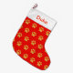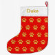 Motif de patte dorée mignon sur le bas de Noël arrière - plan rouge. Le nom peut être personnalisé.