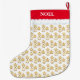 Grande Chaussette De Noël Motif d'or de Noël en blanc et rouge